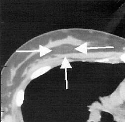 胸にしこりを見つけたとき、すぐに乳がんかもと考えてしまいがちですが、脂肪注入によるしこりの多くは良性と考えてよいでしょう。まずは、診断をしなければならないため、触診、CT検査などを行って、しこりの状態を正確に把握します。