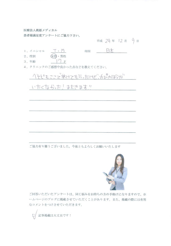 HOME > 舌ピアス > 名古屋栄で局所麻酔とニードルにより舌にストレートバーベルチタンピアスで穴開けを行った17才女性のご感想 愛知県春日井市 2017/12/9