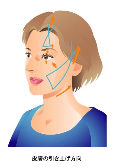 数種類の溶ける糸を組み合わせて、弛みをしっかりと引き上げる施術法。